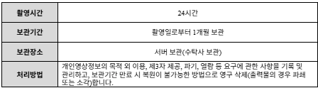 4. 영상정보의 촬영시간, 보관기간, 보관장소 및 처리방법