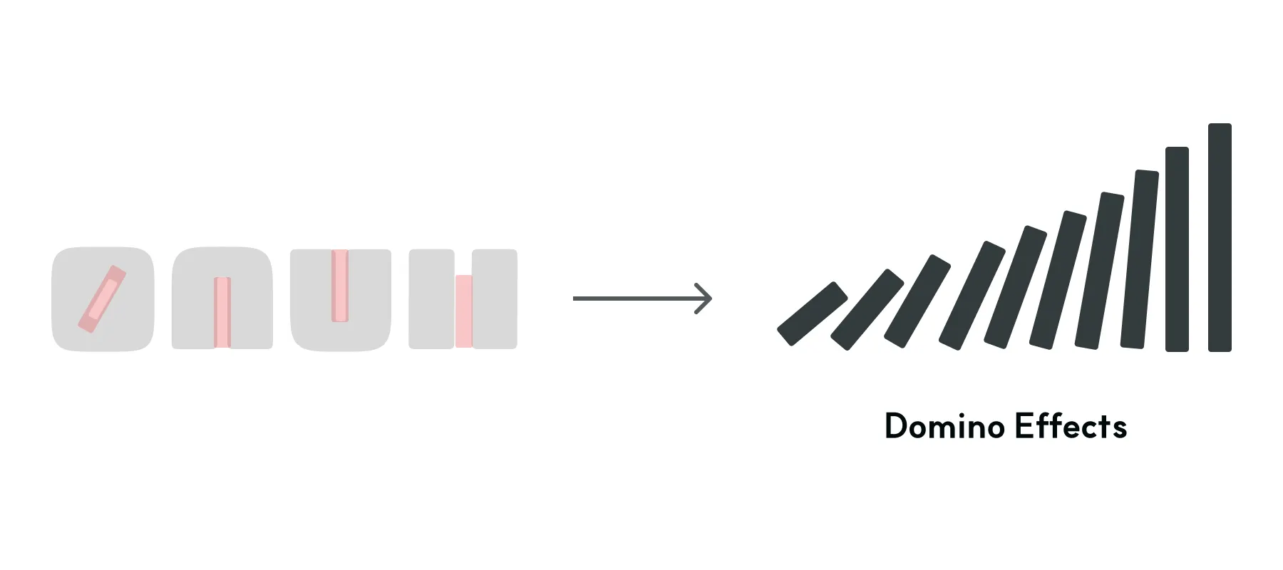 오누이 시그니처의 속공간에서 30도로 기울어진 각도는 첫번째 도미노 조각의 ‘가능성’을 상징합니다. 하나의 도미노 조각을 움직이기 시작하면 도미노 효과로 더 큰 조각을 쓰러뜨릴 수 있듯이 모두에게 어제보다 나은 오늘, 오늘보다 더 나은 내일, 더 나은 미래를 만들어갈 수 있는 잠재력이 있다는 의미를 표현합니다.